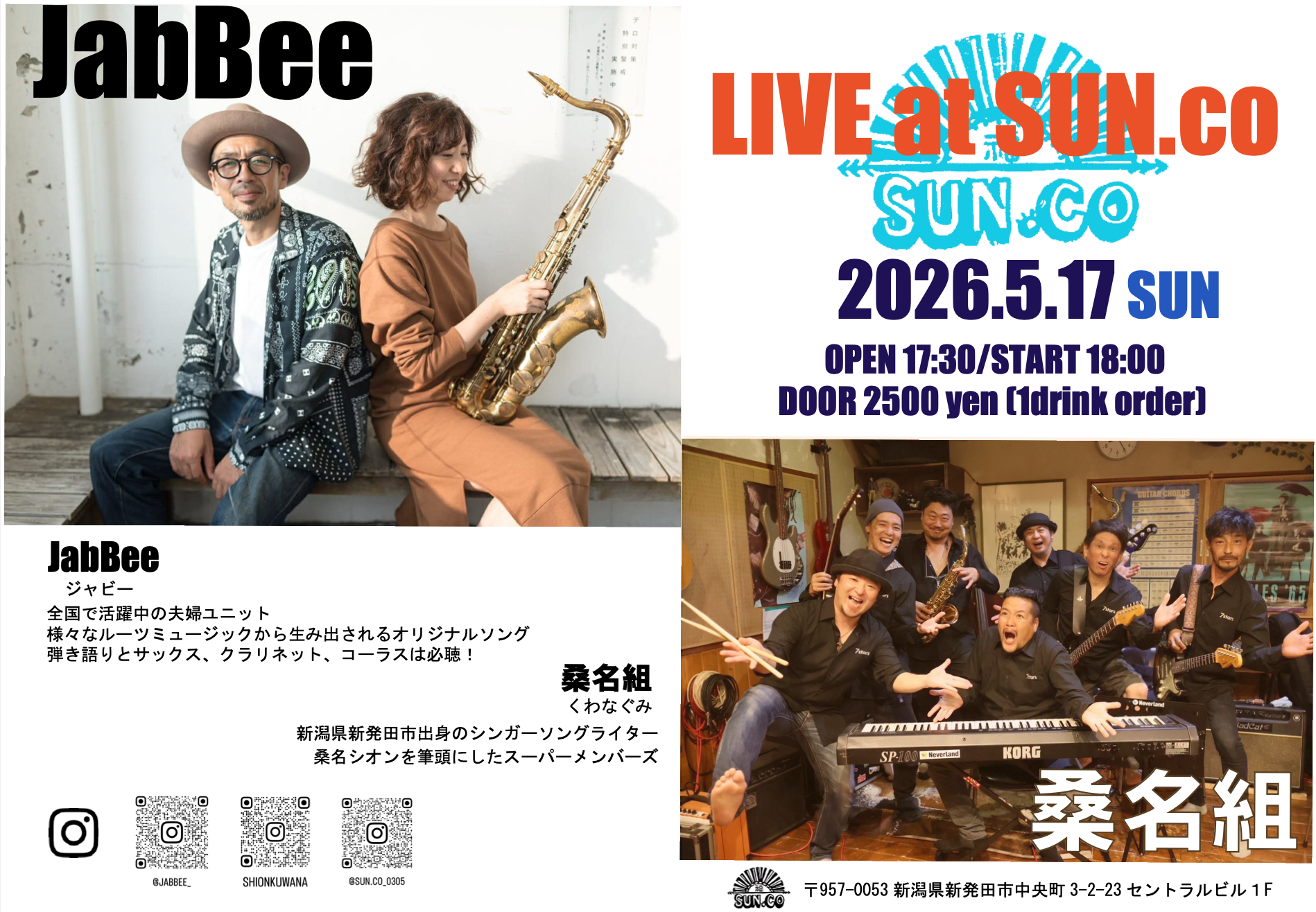 昨年ご一緒したシオンさんの地元、新発田市へ初めて伺います! 桑名組との共演も楽しみです! 【日付】2026年5月17日(日) 【場所】新潟 新発田 SUN co https://www.instagram.com/sun.co_0305 〒957-0053 新潟県新発田市中央町3丁目2−23 セントラルビル [...]