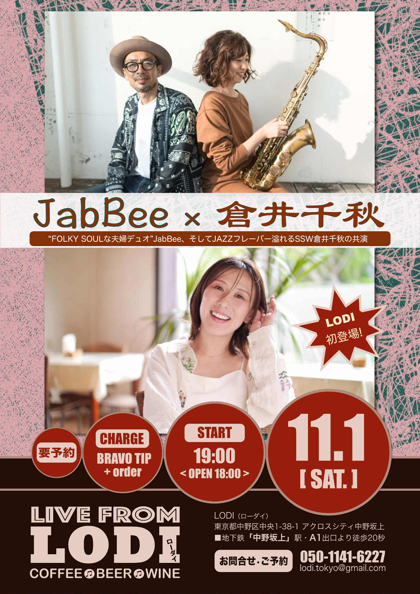 美味しいクラフトビールの呑めるお店 LODI 2回目の登場! 今回は新潟から素敵な歌うたい、倉井千秋を招いて 魅惑の2マン! JabBee は樋渡ナヲタカ(contrabass)入りのトリオ編成! 【日付】2025年11月1日(土) 【場所】中野坂上LODI (ローダイ) 東京都中野区中央1-38-1 アクロスシティ中野坂上 [...]